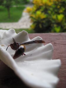 ちくりと私の肩を攻撃したその正体は、この部屋にでっかい巣をもつ”あしなが蜂”