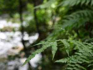 緑の中の滝の真横でロケーションは完璧だけど、何だろうこの「抹茶色」