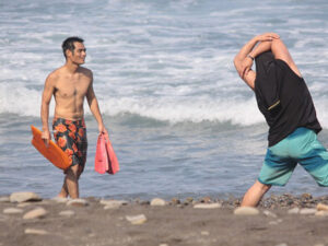 今回のサーフィンの時は、波は良いのだが潮の引いた時間しか割れない…という、時間を奪い合うには格好のコンディションだった。